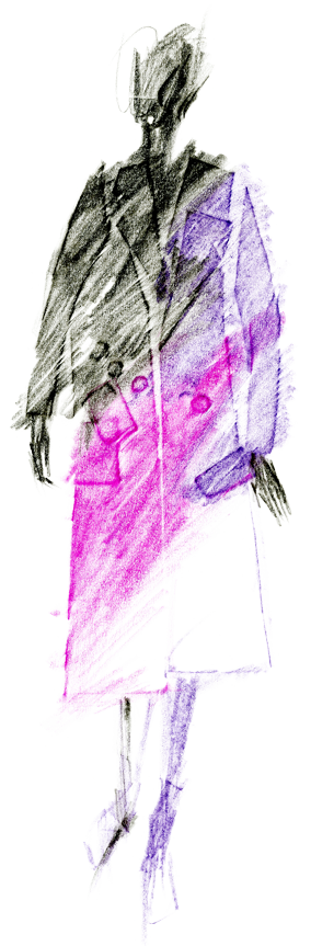 2013 Skica - kolekce šatů z propletených pruhů úpletu, převedení kresby, čar tužkou do 3D podoby2012 Icelandic wind(ow) - inspirace barevnými domky